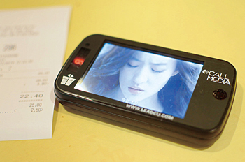 中国では、ショッピングモールのフードコートなどで料理を注文した際、でき上がりを知らせてくれる振動型の端末を渡されることが多い。カフェで私が手にした端末「CALL MEDIA」は、通知してくれるだけでなく、動画を映して待ち時間の退屈さをまぎらわせてくれる。上海に住んで9か月の私だが、動画機能つきのITツールは初めて見た。これから飲食業界に普及していくのかもしれない。