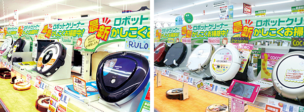 コジマ×ビックカメラ成城店ではロボット掃除機を実際に体験できるデモコーナーが充実 それは、「各メーカーによる製品のラインアップが充実してきたため」という。ロボット掃除機の立ち上がり時期は「ルンバ」がメインだったが、今ではシャープや東芝、パナソニックなどの国産メーカーが参入。吸引力に定評のあるダイソンも製品を市場に投入することを発表している。品揃えの充実で関心を高める消費者が増えて、「ロボット掃除機を初めて購入される新規のお客様を獲得している」と安藤氏は満足そうに語る。