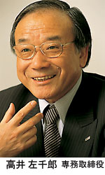 「夏商戦は、コンシューマー向けでは上向いているが、力強いとまではいえない。いま動いているのは、自治体、文教などe-Japanがらみで国家資金が投入されている分野だが、競争は激烈だ。結局価格に絞り込まれるので、利益は出しにくい」と語るのは高井左千郎専務である。