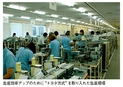 これをカバーするために、POSハンディターミナルなど他の製品の事業を強化することを挙げるが、もう1つ重要なことは生産革新によるコストダウンだ。富士通グループの他の工場などと同様に、ここでも「トヨタ方式」による生産改革をバブル崩壊と同時に91年度から導入開始した。長い活動期間を経て、04年度から「富士通フロンテックものづくり革新運動」を開始。直接数字に表れる業務改善に乗り出した。