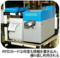 04年9月のRFID導入では、そのラインにRFIDリーダとモニタが設置され、生産指示の内容がモニタ上に表示されるようになった。パソコン生産ではビジネス用を中心にBTO(受注生産方式)による小ロット生産が当たり前になっている。1台ごとに異なる生産指示は、従来のバーコード方式の場合、「1日で10万回もの読み取り作業が必要」(同)だった。組み立てるパソコン1台1台にRFIDカードが添付されていることで、そのRFIDカードを作業台に置けばカードリーダが情報を読み取り、目の前のモニタに生産指示が表示される。作業者はそれを見て、オーダーされた仕様のパソコンを組み立てればよい。