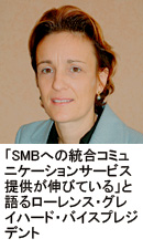 しかし、ビジネスコミュニケーションが可能なシステムやサービスはユーザーが限定されるとの見方がある。実際、「SMB(中堅・中小企業)に対する提供は現段階で難しい」と多くのベンダーが打ち明けている。ところが、「UCC事業の売上高は、約40%がSMBへの提供。SMBはコラボレーションを求めている」と、統合コミュニケーションサービスを担当するローレンス・グレイハード・バイスプレジデントは否定する。(佐相彰彦●取材/文)