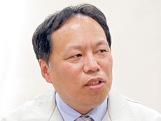 | 松永建設の須釜洋年・購買部課長。購買業務を手がけながら情報システムも預かる。1人で約200人の従業員のPCや情報システムの面倒をみる |