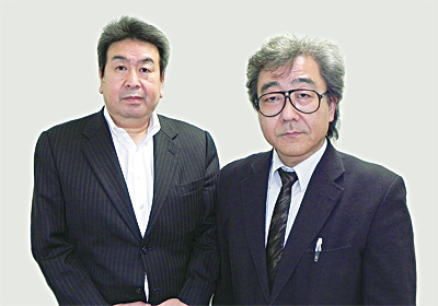 港北出版印刷の沼尾義雄部長(左)と、金丸康明課長