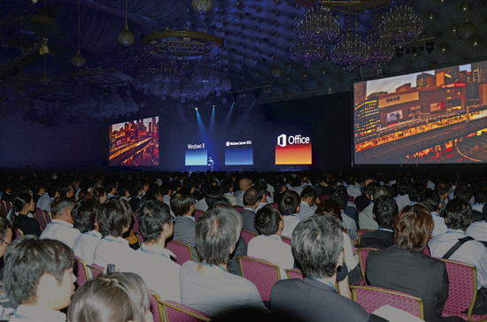 MSCは、毎回、ユーザー企業の情報システム担当者や、パートナー企業の技術者・マーケティング担当者などが集まる。12回目を迎えた今回は、例年以上の人気で、「8300人もの参加申し込みがあって、予定より早く応募を締め切らせていただいた」(樋口社長)と盛況ぶりに満足げな表情。樋口社長は、基調講演で「今、日本の企業は“非活性化”している。成功体験にあぐらをかいている印象がある。日本は心地のいい国になりすぎて、会社のなかも心地よくなってしまっている。あえて心地の悪い状況をつくり出して、チャレンジ・アクションを起こさなければならない」と自身が感じている閉塞感を口にした。そのうえで、「新時代を切り拓く主軸」として「Windows 8」と「Windows Server 2012」、次期版「Office」を紹介して「みなさんのビジネスに役立ててほしい」と語った。これら三つの新製品が特別なものであることを印象づけた。