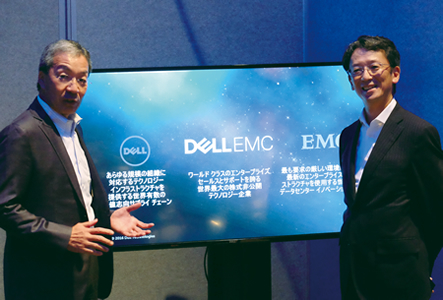 デルの平手智行社長(左)と、EMCジャパンの大塚俊彦社長