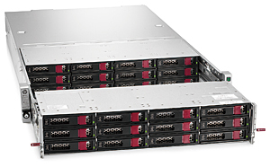 HPE Apollo 4200 Systemこれまでにないストレージ密度を提供する高密度サーバーシリーズ。HPE Apollo 4200 LFF(写真)はオブジェクトストレージ向けに2Uサイズに最大224TB、28本の3.5インチ(LFF)ドライブを、HPE Apollo 4200 SFFはビッグデータ・アナリティクス向けに最大90TB、50本の2.5インチ(SFF)ドライブをそれぞれ内蔵。