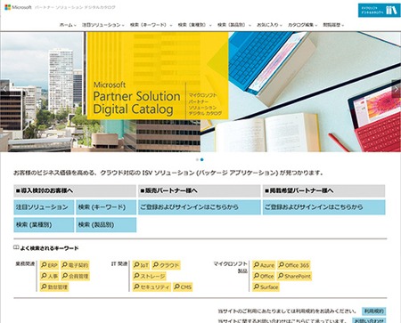また、日本だけのプロモーション強化策として「パートナー ソリューション デジタル カタログ」サイトへの掲載による各ISVの製品訴求強化にも取り組んでいる。パートナー ソリューション デジタル カタログは、ISV各社の製品やソリューションの詳細をカタログベースで確認できるサイトで、話題のソリューションやキーワード、業種などで検索することができる。