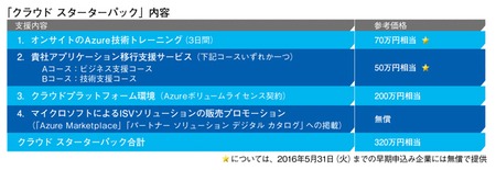 本部長 日本マイクロソフトがクラウド スターターパックで提供する支援内容は、オンサイトによるAzure技術トレーニング(3日間)をはじめ、アプリケーション移行、Azureのボリュームライセンス契約、ISVソリューションの販売プロモーションなどだ。この支援を受けるための価格は320万円(税別)。5月31日までに申し込めば200万円で提供するキャンペーンも実施している。