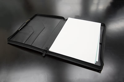 米国のブランド「hartmann(ハートマン)」のレザーノートパッド。20年くらい愛用していて、現在のものが四代目。「これは買って半年だが、色合いが変わってきて、皮が手に馴じむ。やわらかくて持ちやすい」と絶賛する。