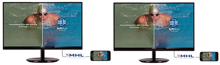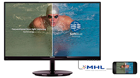 画面の色や輝度を変えずにブルーライトの低減を実現した「ソフトブルーテクノロジー」を搭載する。DC(直流)バックライトシステムを使用した、フリッカーフリー技術も搭載し、目の疲労を軽減する。インターフェースは、DVI-D×1基、HDMI入力(MHL対応)×1基、ミニD-sub15ピン×1基を備える。