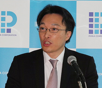 会見に登壇した営業本部長の太田剛執行役員は、「今までピクセラが培ってきたパソコン関連事業、ホームソフト事業、AVソフト事業の技術資産を生かし、IoT事業、翻訳事業、AR/VR事業へと広げ、『おもしろいこと』を実現していく」と今後の意気込みを語った。