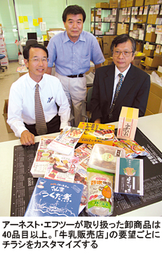 「牛乳販売店」は全国に約1万店舗が存在する。この販売店を流通網として食品を卸売りするアーネスト・エフツーの鮎貝(あゆかい)秀興社長によると、「このうち約3割が牛乳以外の食品や雑貨など『2次商品』で売り上げをあげている」という。約400店と提携する同社には、全国に競合が数多く存在するのだ。