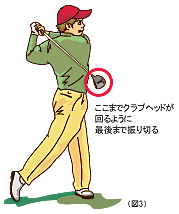 クラブヘッドがどこにあるかを見てみましょう。振り切れていればフィニッシュの時に無理なく、クラブヘッドが自分で見えるはずです。
