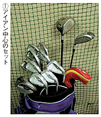 写真①は、オーストラリアのツアープロのクラブセッティングの例です。ウッドはドライバーと3番のみ、アイアンは2番からで、ウェッジはピッチング、サンド、ロブ(60度)の3本、パターを加えて14本です。