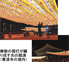 ▼お釈迦様の誕生日は、4月8日。太陽暦の日本ではその日を「花まつり」といって、お釈迦様の像に甘茶を掛ける。といっても、この程度の知識しかない。韓国の暦は旧暦だ。お釈迦様の誕生日の旧暦4月8日は、太陽暦でいえば今年は5月2日だ。その夜、ソウル市内をタクシーで移動していた。午後7時半頃だった。車窓からネオンサインを見ながら乗っていると、突然、建物の一角が提灯の光で異常に輝いているのが見えた。これは何だ!? 「運転手さん、ここで降ります」。そこは曹渓寺というお寺だった。闇に包まれた境内を見上げながら歩くと、提灯の赤や緑、青、黄色の光が目に飛び込んでくる。 ▼お堂に入ってみた。金色の仏像が3体、並んでいる。金ぴかの仏像の前で、僧がマイクに向かってお経を唱えている。信者は思い思いの形で座布団に座って、数珠を持ってお経を唱えている。なかには会社帰りの人もいる。変に畏まった威厳がない。生活の断片にある、普通の空気が流れている。曹渓寺は曹渓宗の総本山だが、肩肘張らない空間を感じた。久しぶりに座禅を組んだ。ひとつ隣の座布団で、30代半ばの女性が無心に「五体投地」を繰り返している。1時間はとうに過ぎた。煩悩の数をはるかに越えているはずだ。何のための所作なのか。座りながら考えてみた。「五体投地」を目の当たりにしたのは初めてだ。この人は何年も続けているのだろう。美しい姿だった。(BCN社長・奥田喜久男)