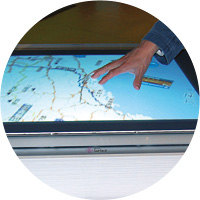 マイクロソフトが開発したテーブル型PC「Microsoft Surface」。画面を指で触れてアプリケーションを操作する。マウスやキーボートが不要で直感的に操作でき、複数の人が同時にアプリケーション画面に触れても反応する。アミューズメント施設やホテル、交通機関などが関心を示しているようで、近隣の地図や情報を表示するなどの利用が見込まれる。米国ではシェラトン ホテル&リゾートが導入した。タッチ操作は、アップルの「iPod touch」や「iPhone」がヒットしたことで一躍注目の的に。ユーザーインタフェース(UI)の主流となるか。(写真は米マイクロソフト本社=ワシントン州の「Visit Center」)
