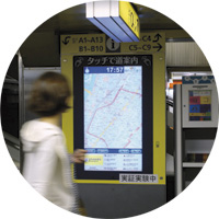 地下鉄銀座駅では、電子案内表示版「タッチで道案内」の実証実験が行われている。東京メトロと日立製作所が共同で実施した。今年4月20日から開始、期間は6月30日までとなっている。薄型ディスプレイを内蔵したタッチ式の表示端末で簡単に操作できるのが特徴。数寄屋橋交差点改札口側に縦型タイプ、銀座四丁目交差点改札口側には横型タイプを設置している。乗降客が多く、しかも出口が多い銀座駅で検証することにより、さまざまな利用シーンを想定している。なかでも、高齢者の利用率が高まれば、地下鉄の駅で地図表示板のデジタル化が実現する可能性は高い。