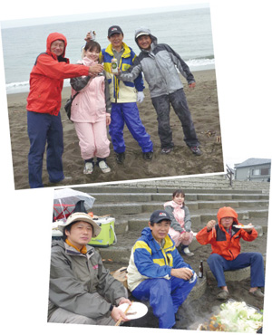 ▼海となれば魚釣りだ。釣り船を一艘仕立てることになった。魚釣りを趣味にする人は多い。社内で希望者を募ったら、紅一点の5人編成となった。千葉県君津駅で集合。車2台で、館山近くの砂浜に向かった。小雨の降るなか、バーベキューを楽しむ。砂浜で投げ釣りをするが、釣果なし。食後に移動。小さな港の堤防から釣り糸を垂れる。小魚が数匹釣れる。なんと楽しいことか。翌日は船釣りだ。鯵釣りを目指す。船に乗り込む。「ブルルーン、バリバリバリ」。身震いして船が動き出す。釣れなくとも、船旅だけでも満足だ。海から見る山並みは、日頃見慣れない山容だけに、新鮮だ。船は大揺れ。5時間ほど揺られながらも、2匹の鯛を釣った。これで“あらかん”の旅は目的は果たした。鯛さん、ありがとう。(BCN社長・奥田喜久男)