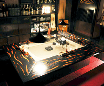 昼夜を問わず、大勢の人でにぎわう新宿・歌舞伎町。多くの飲食店が軒を連ねるこの場所で、知る人ぞ知る炉ばた焼の店が「牛のよたれ」だ。店の目玉は囲炉裏。13人が座れば満席という囲炉裏端は、焼き方が目の前で魚や肉を楢炭(ならすみ)で炙るのを眺めることができ、目と舌で味を楽しめる。花戸社長も必ず囲炉裏端の席に座るそうだ。
