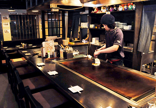 ビール、焼酎、日本酒、ウィスキー、サワー、梅酒とお酒の種類も豊富。奥寺氏はもっぱら部下とのコミュニケーションの場に利用している。熱々のもんじゃ焼きを頬張りながら「仕事抜きで楽しい時間を過ごして、英気を養っている」そうだ。