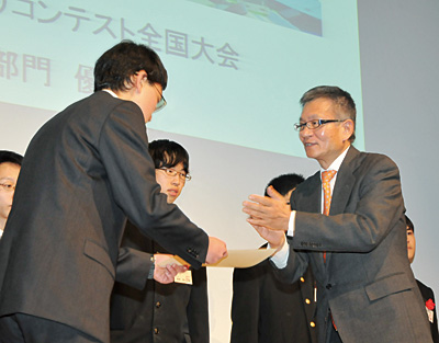▼先生と生徒の一言を紹介する。「生徒がとても喜んでいます。大人の方々に見ていただける機会はほんとに貴重です。これで今年も頑張れます。来年も来ます」=松本工業高校・赤羽治先生。「学生自身もいろいろな発見をしたようです」=東京高専・北越大輔先生。「いろんな人に見ていただくなかで、ソフトの改良すべき点などに気づかされました」=開成高校2年生・奥殿貴仁さん――。「ものづくりの環」が回り始めた。(BCN社長・奥田喜久男)