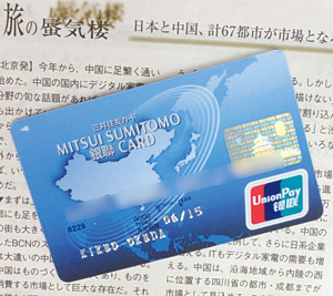 【神田発】心配しながら聞いてみた。「銀聯カードは使えますか?」「使えますよ」。わくわくしながら、真新しいカードを出した。銀聯カード。もちろん、私のカードだ。7月14日、大阪日本橋のJ&Pテクノランドで最初に使ってみた。13日の夜、帰宅すると、申し込んでおいた念願の銀聯カードが届いていた。発行元は三井住友カードだ。本当にできたんだ。中国人しか持てないのかと思っていた。