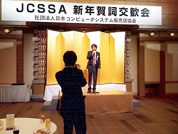 【内神田発】あちらでもこちらでも元気な会話が弾んでいる。日本コンピュータ販売店協会(JCSSA)が1月17日に帝国ホテルで開催した「新年賀詞交歓会」の会場風景だ。基調講演が、宇宙開発史に感動的なドラマを刻んだ“はやぶさ”であっただけに、参加者の自信が倍増したのかもしれない。パーティー会場は明るい雰囲気が漂っている。