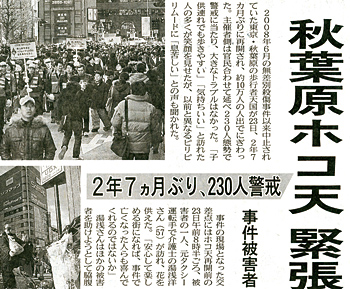秋葉原のホコ天復活は、新聞に大きく取り上げられた(1月24日付の日本経済新聞)