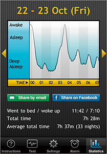 そのアプリとは、設定時刻の30分前から眠りの浅いタイミングを見計らってユーザーを起こしてくれる「Sleep Cycle alarm clock」だ。目覚ましの機能に加えて、睡眠時間や眠りの浅さ/深さなどを測定してグラフ表示する機能を備えている。梶本氏は、「毎朝グラフを確認して、眠りの状態から体調管理の参考にしている」そうだ。