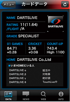 利用するスマートフォン用アプリは限られているというが、「DARTSLIVE」は、データがなくなった後でも愛用している。「ダーツはあまりうまくなくて、(ダーツバーに足を運んでも)最近は、呑んでいるだけなのだが……」というものの、手軽に成績を入力・チェックできることから気に入っている。