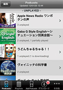 「朝の通勤時は、Podcastを聞いている。英語系やITガジェット関連のニュース番組が多い」という森チーフスペシャリスト。iTunesでダウンロードしたPodcastを通勤前にiPodに流し込むのが日課だった。ただ、「パソコン起動(スリープ解除)をはじめ、iTunes起動、Podcastダウンロード、iPodのケーブル接続、同期、接続解除は面倒くさい」。iPhoneの場合、外出先からでもPodcastをダウンロードできるが、iPod機能にあるPodcastはiTunesで管理するのが原則。iPhone単体だと、とても使いづらいという悩みを抱えていた。