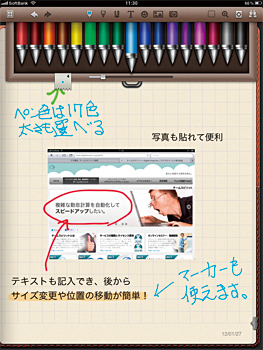 荻島浩司代表取締役は、手書きで文字を書くためのノートアプリケーション「Noteshelf」を重宝している。「最近は『チームスピリット』のデモンストレーションをiPadで実施する機会が増えたので、ホワイトボード替わりに顧客とのディスカッションを記録する用途に使っている」という。もともとは、顧客との打ち合わせ内容を記録していたそうだ。