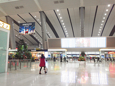 広くて近代的な北京南駅の構内。サムスンの広告が目を引く