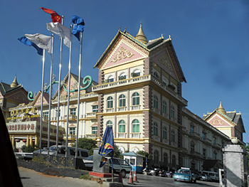 ▼昆明はベトナム、ラオス、ミャンマーと国境を接している。中国が南に経済活動を広げる拠点となる要所だ。昆明の成長に力点を置く政府の方針は納得できる。この地は、三国志の時代に諸葛孔明が攻めて、手中にしている。その当時から黄河文明が南に広がるうえでの要所だということがわかる。長い年月を経て、昆明は複数の異民族の文化を取り入れて街の風味を醸している。さらに南下して、ラオスとの国境に近い景洪に宿泊した。このホテルの入り口には大きな象のオブジェがある。雲南では、諸葛孔明も象を使う敵と戦っている。中国もここは南国の雰囲気だ。中国は、広くていろいろな顔をもっている。景洪から陸路で国境を越えて、ラオスに入った。国境をまたぐと、国の顔はガラリと変わる。(BCN社長・奧田喜久男)