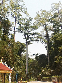 ▼思わぬ所でスカイツリーという名前のルーツに出会った。成田空港から上海の浦東空港へ。そこから国内線で雲南省の昆明に向かう。昆明から飛行機で西双版納(シーサンバンナ)タイ族自治州の景洪へ。さらに200kmの距離をクルマで飛ばすと、ボーテンというラオスとの国境の街に着く。南へ南へと暑い土地に向かって走る。その途中にダムがある。このあたりは亜熱帯樹林で、望天樹の「空中走廊」というひと休みができる公園がある。