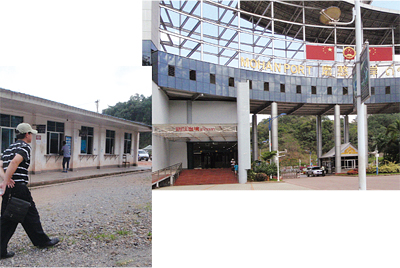 ラオス側(左)と中国側それぞれの国境管理事務所を見比べると、国力の差が歴然だ