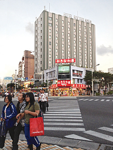 観光客の中国人と、生活している中国人が混在する沖縄の街なかの風景