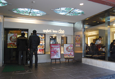 「名古屋名物のあんかけスパゲティを食べたいなら、この店がお勧め」。名古屋市に本社を置くSIerのシーラインの岡克宏氏が推薦してくれたのが、パスタ専門店の「チャオ」。名古屋の名物といえば、みそ煮込みうどんやひつまぶし、みそカツ、天むすをイメージすることが多いが、「実は、あんかけスパゲティも名古屋名物として有名」なんだそうだ。太めのパスタに、中華料理の天津飯の餡のようなとろみがあるソースがかかっている。「チーズなどをトッピングして楽しむ」とか。チャオは、愛知県内に6店舗を構え、JR名古屋駅付近にも2店舗がある。写真の店舗は「第5堀内ビル店」で、名古屋駅から歩いて5分ほど。時間があまりない時でも駅から近いので、立ち寄りやすい。出張で名古屋を訪れた時にはぜひ試してもらいたい。お昼の12時前後はかなり混雑しており、並ばなければ店に入れない可能性が高いので、要注意。(鈎)