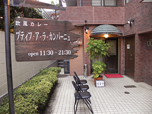 ネットサービスのKDDIウェブコミュニケーションズの山田浩喜社長の行きつけの店は、欧風カレー専門店「プティフ・ア・ラ・カンパーニュ」だ。「お昼を食べによく出かける」とのこと。欧風カレーは、日本のカレーというよりは煮こみスープに近く、「タマネギをよく煮こんだ甘みがして、デミグラスソースっぽいというか、ビーフシチューのような深みのあるカレーに魅了された」と、たいそうお気に入りの様子だ。KDDIウェブの社員は、欧風カレー好きが少なくなく、最初にこの店を知ったのも「社員に連れて行ってもらった」ことがきっかけだった。メニューはカツカレーやコロッケカレーなどの日本的な品揃えではなく、「ポークやビーフ、シーフードといった分類で、お勧めはプリプリのエビが入ったシーフードカレー」。また、カレーが出てくる前に蒸かしたジャガイモが2個出てくるのも、このお店の特徴だそうだ。(寶)
