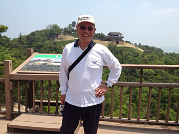 ▼「こんにちは、お久しぶり」と挨拶を交わし、車でピックアップしてもらって、総社市にある鬼城山(きのじょうざん)に案内してもらった。そこは標高397mの頂上に城壁を張り巡らし、溜池をつくって生活できる広い城址だ。史跡の発掘が進んで、再現工事も進んでいるが、史実がないという不思議な場所なのだ。天智天皇2年(663年)、倭国は白村江の戦いに敗れる。その当時に生きた人たちの城だ。あちこちから倭の国の欠片が出現する。何とも、ワクワクする。2013年のスマートフォン時代の欠片は1500年先にどんな形になっているのだろうか。岡山は、神話でいう国つ神の出雲とは街道続きで、古墳だらけの土地柄だ。古い神社も多く、時間をかけて歩くには格好の場所だ。近江の里と同様に歩きがいがある。健脚の加藤さんの案内で山城址を散策する。「この道は昔はなかったんよ」と、昔とは小学生当時のようだ。加藤さん、ありがとうございました。お昼に食べた牛どんも美味かったです。(BCN会長・奥田喜久男)