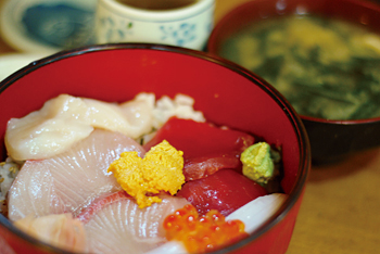 隅田川にかかる清洲橋は、関東大震災の復興事業として架橋された。橋から延びる清洲橋通りを北上し、JR総武線と交差する地点を越えると、しぶい店構えの居酒屋「大漁館」が左側に見えてくる。クラスメソッドの都元ダイスケ氏が、ランチタイムに新鮮な魚介類を食べたくなったら足を運ぶ、行きつけの店だ。都元氏のおすすめメニューは「海鮮丼定食、鉄火丼定食、ウニいくら丼定食」の三大海鮮定食だ。鉄火丼にのっているのは、本マグロの大トロと中トロのみ。ウニいくら丼は、ウニが一舟ついてくる。