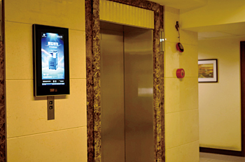 上海といえば、外灘から見る浦東新区エリアの超高層ビル群が圧倒的な知名度を誇っていて、市内に数多くの高層ビルが存在する。高層ビルは、夜景を楽しむには最高のシチュエーションだが、エレベータの待ち時間が長くて不便。とくに出退勤のラッシュ時には、大混雑していらいらするほど待たされる。デジタルサイネージは、このような時間をやりすごすための利用者への配慮ともいえる。