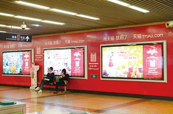 地下鉄静安寺駅では、天猫(TMALL)などのECサイトが大規模な広告を掲載。「独身の日」への意気込みが感じられた