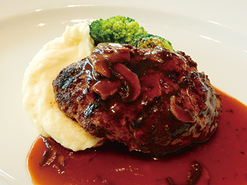パロアルトネットワークスのアリイ社長が、「お客様との会食や、大きな商談がまとまったときのお祝いでよく訪れています」と紹介してくれたのが、六本木ヒルズのけやき坂通り沿いにある『37 Steakhouse & Bar』。平日のランチタイムに足を運ぶと、周辺オフィスのビジネスパーソンで賑わっていた(写真はランチメニューの「37 オリジナル 200g ハンバーグステーキ」)。