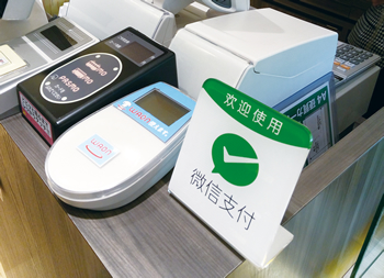 大型連休とあって、予想通り、東京の街中にはたくさんの中国人観光客が……。一方、百貨店やドラッグストアなどの店舗では、レジスペースのEdyやPasmo、WAONなどの電子マネー用端末のそばに、中国で見慣れた決済サービスのマークをよく見かけたのには驚いた。インバウンドビジネスを強化するために、決済サービス「支付宝(Alipay)」「微信支付(WeChat Payment)」を導入する店舗が急増しているのだ。