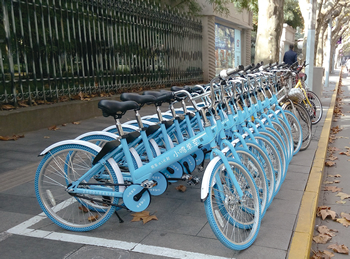 夏頃まで、上海の街中で主に見かけるシェアリング自転車といえば、オレンジ色が目印の摩拜単車(Mobike)だった。しかし、その後は黄色の共享単車(Ofo)が急増。さらに、この1か月ほどの間で、青色の小鳴単車(Xiaoming Bike)の数も増えてきた。各社、すでに数十万台規模の自転車設置を進め、消費者の囲い込みを図っている。