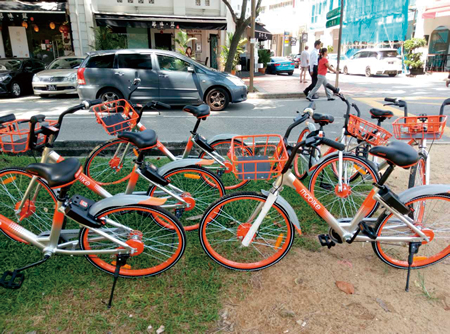 5月にシンガポールでみつけたmobike。中国ほどの勢いでは普及していない