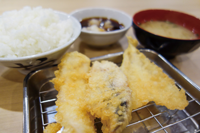 福岡市を中心に6店舗を展開する「天麩羅処ひらお」は、揚げたての天ぷらをリーズナブルに味わえる店として根強い人気を誇る。福岡市、さくらインターネット、福岡地所、アパマンショップホールディングスが運営する官民共働型スタートアップ支援施設「FUKUOKA growth next」の隣にある大名店も、昼時や帰宅時間となれば、行列ができる人気店。同施設に入居するスカイディスクの橋本司・代表取締役CEOもその味とコストパフォーマンスの高さには太鼓判を押す。来店客のほとんどは、定食をオーダーする。創業時からのメニューである天ぷら定食(写真)は、キス、季節の白身魚、鯖、イカ、季節の野菜3品で770円。写真には3品しか写っていないが、揚がったネタから順番に運ばれてくる方式で、3品目までしか我慢できずに、食べ始めてしまった……。ひらお名物のいかの塩辛や惣菜も各席に常備されており、こちらは食べ放題。(霹)