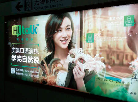最近、上海の地下鉄駅構内などで、やたらと英会話の広告をみかける。中国のグローバル化やインターネットの発展に伴い、気軽に安値で利用できるオンライン英会話サービスの需要が拡大しているのだ。例えば、外国語学習のポータルサイトや教材を展開する滬江網校は7月10日、新たに英会話サービス「Hitalk」を開始。ホワイトカラー向けに実践的な対人英会話サービスを提供する。